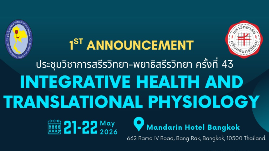 งานประชุมวิชาการสรีรวิทยา-พยาธิสรีรวิทยาครั้งที่ 43 ประจำปี 2569โรงแรมแมนดาริน กรุงเทพฯ