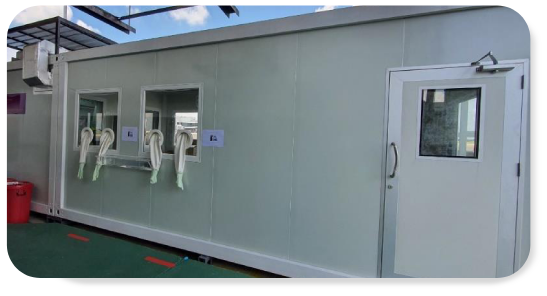 ร่วมกันออกแบบ และพัฒนาห้องปฏิบัติการอณูชีวโมเลกุลเพื่อใช้ในการตรวจหาเชื้อไวรัสโคโรนาสายพันธุ์ใหม่ หรือ Severe Acute Respiratory Syndrome Corona Virus-2 (SARS-COV-2) หรือ COVID-19 นั้น จะต้องมีการแบ่ง แยกพื้นที่ปฏิบัติงานตามมาตรฐานการปฏิบัติงาน PCR ออกเป็น 3 ส่วน เพื่อช่วยป้องกันบุคลากรทางการแพทย์ และบุคคลทั่วไปปลอดภัยจากการติดเชื้อ ได้แก่