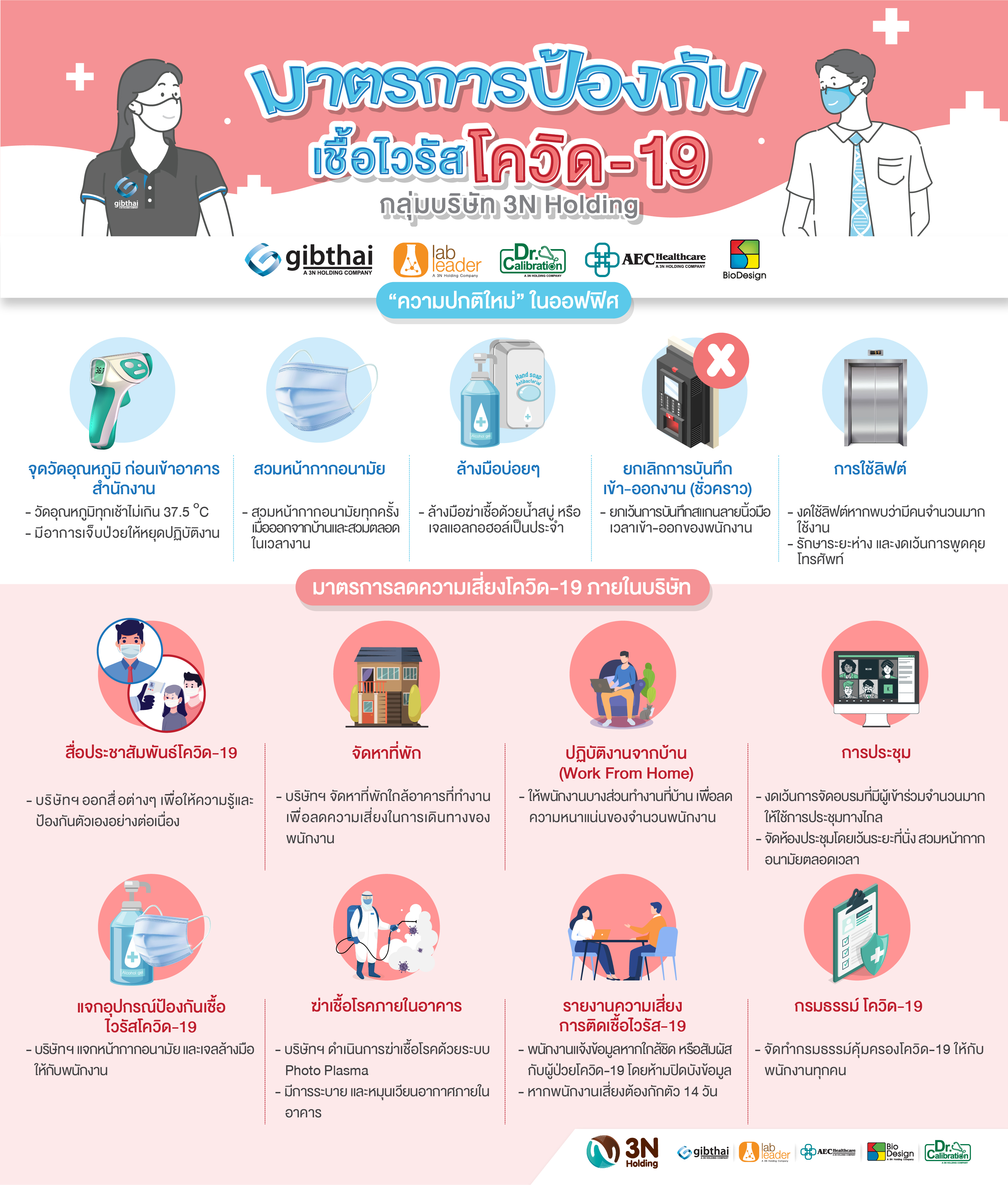 ตามที่สถานการณ์การแพร่ระบาดของไวรัสโควิด-19 เพื่อเป็นแนวทางสำหรับกลุ่มบริษัททรีเอ็น โฮลดิ้ง ต่อการปรับตัวสู่ความปกติใหม่และความปลอดภัยของพนักงาน ทางบริษัทฯ จึงกำหนดมาตรการให้เหมาะสมสอดคล้องกับสถานการณ์