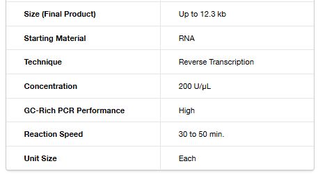 Note: The latest member of the SuperScript RT family, SuperScript IV Reverse Transcriptase, features enhanced thermostability, processivity, yields, and performance with any RNA samples, including those of suboptimal purity or integrity.