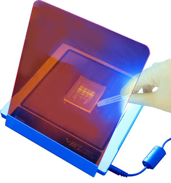 The advanced BluView Transilluminator separates its 580nm amber lid from the body, and makes the illuminator thinner and more lightweight. Like the last generation of BluView Transilluminator, it is packed with safe 470nm blue LED light. With imaging size of 153x153mm, you could fit any small midi size gel on top of the transilluminator. The BluView Transilluminator is also compatible with our imaging system such as Digimage System and Smartview Simple System.