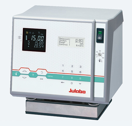 JULABO Refrigerated & Heating Circulators for heating and cooling are suitable for external temperature tasks and for temperature applications directly in the bath. A model from three different series’ with different capacities can be selected. Powerful circulating pump systems and high heating and cooling capacities guarantee short heat-up and cool-down times. The inevitable dust accumulation that occurs in refrigeration systems is solved by means of an easily removed venting grill, which allows for easy cleaning. Depending on the model, the units are equipped with handles or castors for an easy transportation. All models have a drain tap on the front allowing the fluid to be drained easily. The compact assembly of each unit enables a space to be saved in the laboratory.