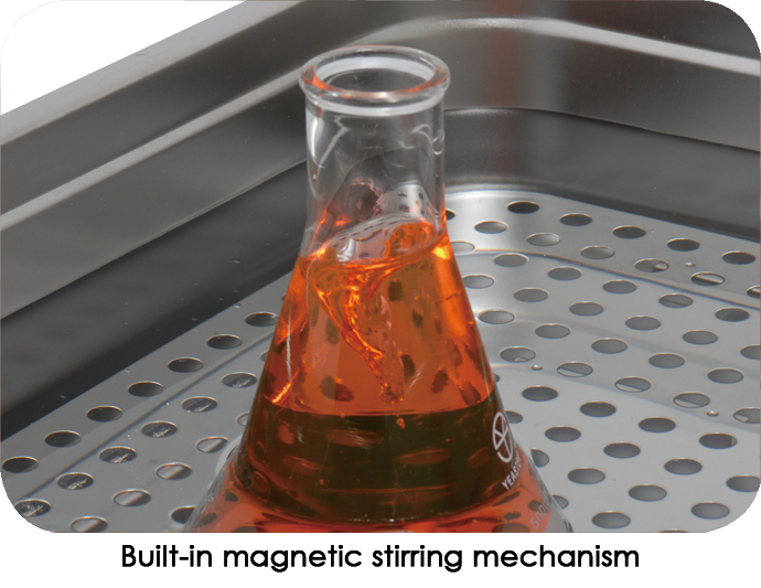 • Built-in magnetic stirring mechanism for water agitation, water temperature uniformity and medium solution mixing