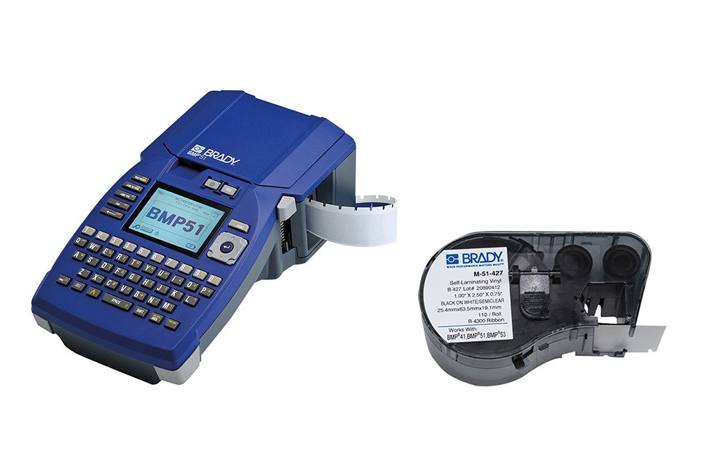 - Compatible with Brady BMP51 printer continuous tape cartridges to enable printing of various styles and widths