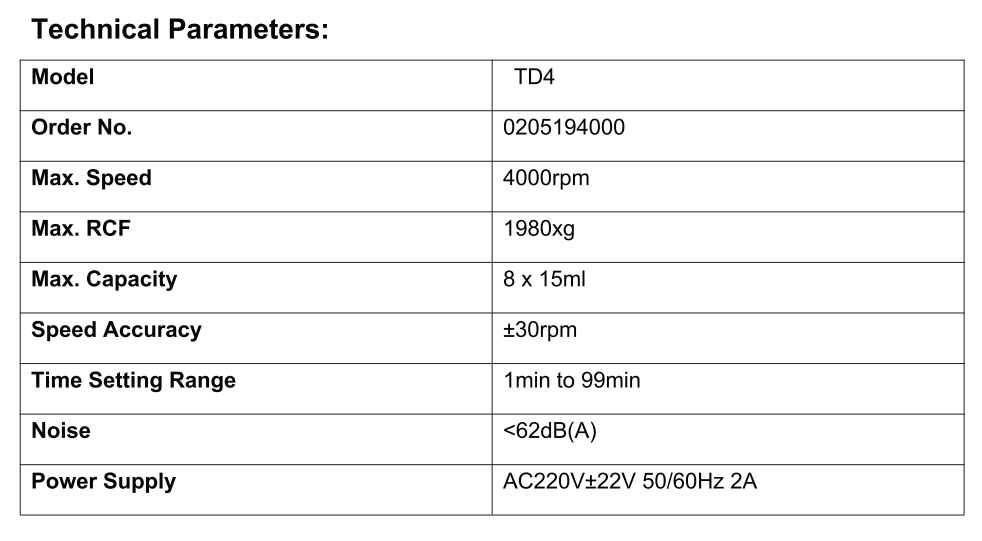 TD4 TABLETOP SPEED CENTRIFUGE W/ ROTOR 8x15 ML