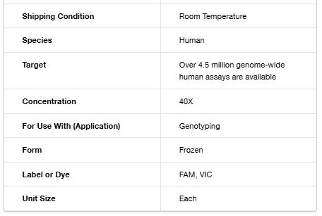 - Tested—all human SNP genotyping assays are functionally tested to ensure allelic discrimination