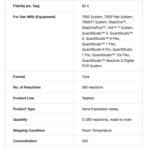 - Gold-standard TaqMan qPCR chemistry—TaqMan assays draw on Thermo Fisher Scientific's bioinformatics assay design pipeline to help ensure high specificity and minimal cross-reactivity, even for gene variants with high sequence homology