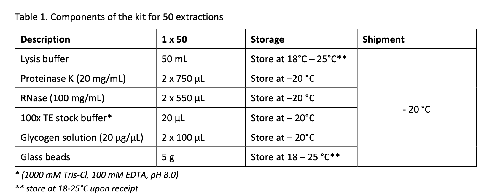 PCR testing. Please note that the kit does not contain the solvents necessary for extraction due to freight security reasons.