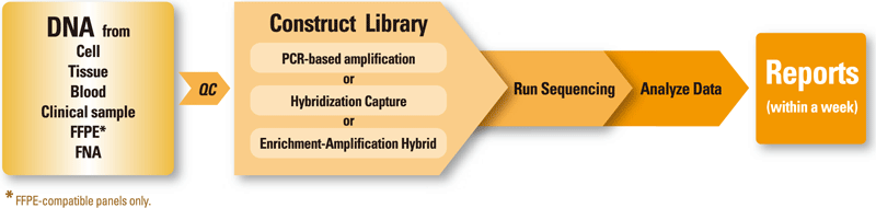 การทำ cancer panel sequencing นั้นมีความสะดวกและยืดหยุ่นต่อการใช้งานค่อนข้างมาก เพียงผู้วิจัยเตรียมตัวอย่างที่เป็น gDNA ของผู้ป่วย เช่น DNA จากเนื้อเยื่อต่างๆ, Formalin-Fixed paraffin-Embedded(FFPE), เลือด, Cell Cultures, Clinical Samples และ Fine Needle Aspirates(FNA) เป็นต้น