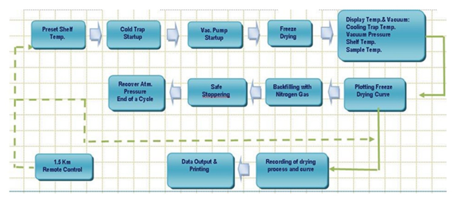 ระบบควบคุมถูกออกแบบให้ใช้งานง่าย ให้ผู้ใช้งานสามารถตั้งโปรแกรมกระบวนการทำแห้งได้ตามความต้องการ ตั้งแต่การทำแห้งไปจนถึงการละลายน้ำแข็ง (สำหรับเครื่องทำแห้งแบบแช่เยือกแข็งระดับ pilot)