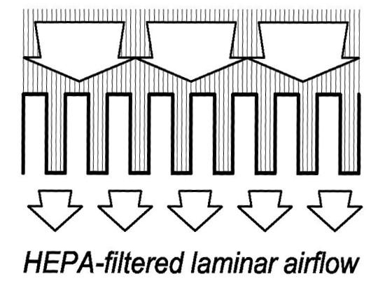 อากาศรอบๆตัวเครื่องจะถูกดึงเข้ามาผ่านตัวกรองที่ด้านบนของตัวเครื่อง และผ่านไปยังบริเวณปฏิบัติงานผ่านตัวกรองชนิด HEPA