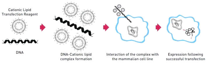 การวิธีนำเอาสารพันธุกรรมเข้าสู่เซลล์หรือ Transfection นั้นสามารถทำได้หลากหลายวิธี ซึ่งหนึ่งในวิธีการที่นิยมทำกันอย่างแพร่หลายคือการใช้ lipid base transfection (liposome) เป็นตัวนำพาโดยอาศัยหลักการที่เรียกว่า cationic lipids-mediated delivery โครงสร้างของ liposome ส่วนผิวจะมีประจุบวก ซึ่งสามารถจับกับ phosphate backbone ของสารพันธุกรรม (DNA/RNA)และ cell membrane ของเซลล์ได้ ทำให้สามารถรวมตัวเป็น liposome/nucleic acid complexes ผ่านเข้าไปในเซลล์ด้วยกระบวนการ endocytosis