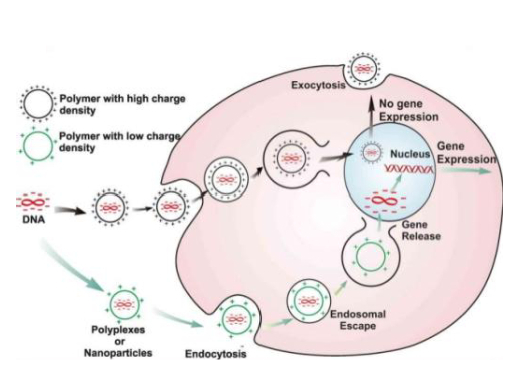 รูปที่ 2: แสดงกระบวนการฟอร์ม complex ระหว่าง DNA กับ cationic reagent และกระบวนการ endocytosis ของเซลล์