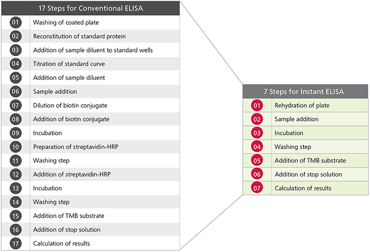รูปที่ 2: เปรียบเทียบขั้นตอนที่ลดลงของ Invitrogen Instant ELISA และ ELISA แบบดั้งเดิม