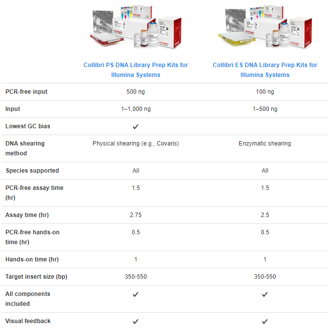 - กรณีที่ความเข้มข้นของ DNA หรือ RNA ค่อนข้างสูง สามารถเลือกใช้ Collibri PCR free เพื่อลดระยะเวลาในการทำงาน