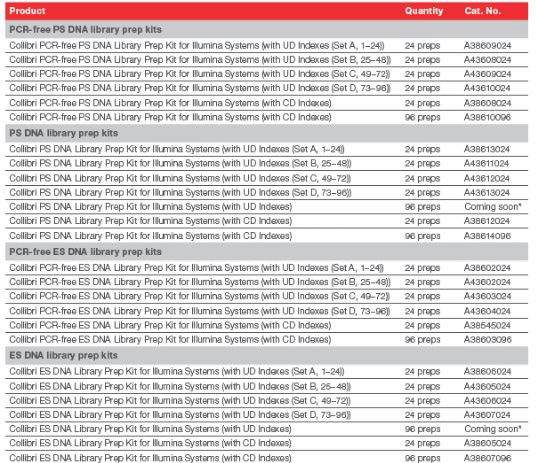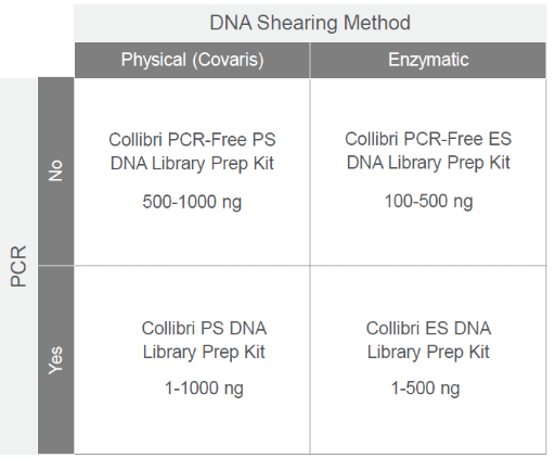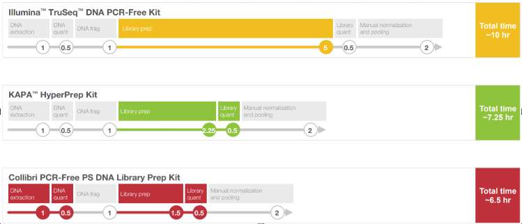 • Collibri™ PCR-free Prep Kits ในกรณีที่ DNA concentration 100–1,000 ng ซึ่งจะช่วยลดระยะเวลาการทำงาน