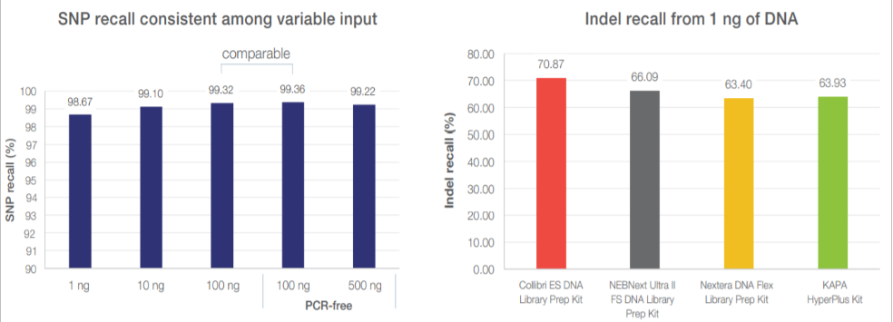 รูปที่ 3 เปรียบเทียบ Collibri™ DNA Library Prep Kits กับ Library prep kit อื่นๆ ในการตรวจสอบ SNP และ Indel จาก DNA 1 ng