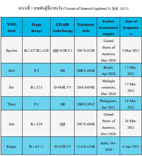 1. สายพันธุ์ที่น่าสนใจ (Variant of Interest)