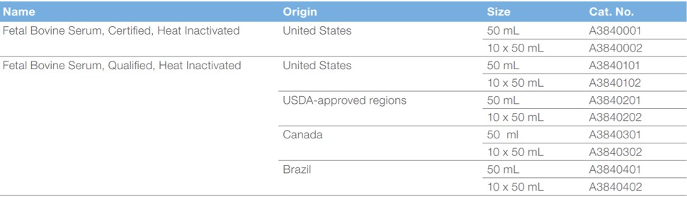 • Heat Inactivated One Shot FBS