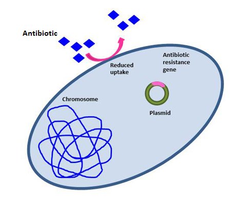 เป็นการดื้อต่อยาปฏิชีวนะที่เกิดจากการเปลี่ยนแปลงทางเข้าของยาปฏิชีวนะ เช่น แบคทีเรียแกรมลบจะมีส่วนของ outer membrane ที่ช่วยในการปกป้องแบคทีเรียจากสิ่งแวดล้อมภายนอก โดยแบคทีเรียจะใช้ outer membrane ในการคัดเลือกยาปฏิชีวนะที่จะเข้าสู่เซลล์