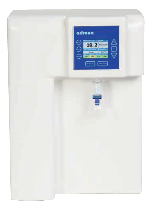 Adrona รุ่น Crystal E 30 Bio สามารถผลิตน้ำได้ 2 ชนิด ได้แก่ น้ำที่มีความบริสุทธิ์สูง (Ultrapure water) ซึ่งเหมาะสมต่อการใช้งานกับเครื่อง HPCL, GC หรือใช้กับงานที่ต้องการความแม่นยำในการวิเคราะห์สูง และน้ำชนิดที่ 2 ได้แก่ น้ำที่มีความบริสุทธิ์ หรือที่เรียกกันทั่วไปว่าน้ำปราศจากไอออน (Deionization water) ซึ่งเหมาะสมต่อการใช้วิเคราะห์ตัวอย่างทางด้านเคมี หรือการเจือจางตัวอย่าง เป็นต้น