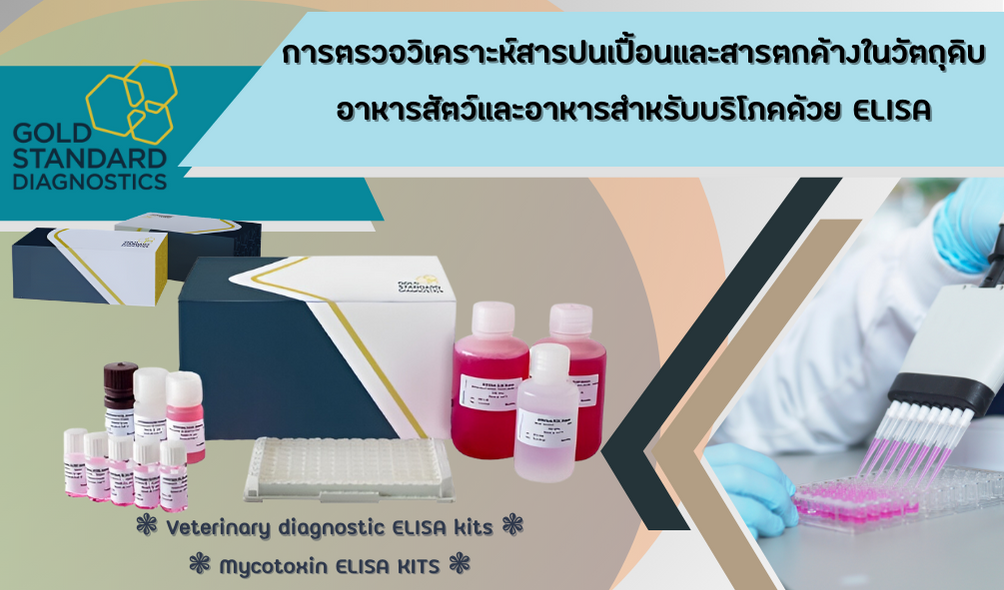 ดังนั้นวิธี ELISA จึงนิยมนำมาใช้ในการหายาตกค้างในสัตว์ พิษวิทยา สารก่อภูมิแพ้ และการปนเปื้อนไมโครทอกซินในอุตสาหกรรมอาหาร ซึ่งในปัจจุบันบริษัท Gold Standard Diagnostics ได้มีการพัฒนาเป็นชุดตรวจ ELISA ที่มีความแม่นยำ พร้อมต่อการใช้งาน สะดวกในการตรวจวิเคราะห์มากยิ่งขึ้น ตลอดจนครอบคลุมสารปนเปื้อนและสารตกค้างต่างๆ ตามข้อกำหนดของกระทรวงสาธารณะสุขและองค์กรระหว่างประเทศ โดยมีรายละเอียดเบื้องต้นดังนี้