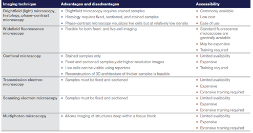 ซึ่งในปัจจุบันนี้มีการพัฒนากล้องจุลทรรศน์และระบบการถ่ายภาพที่สามารถรองรับการถ่ายภาพเซลล์แบบ 3 มิติได้ รวมทั้งสามารถบันทึกการทำงานของเซลล์ได้อีกด้วย ดังตารางด้านล่าง