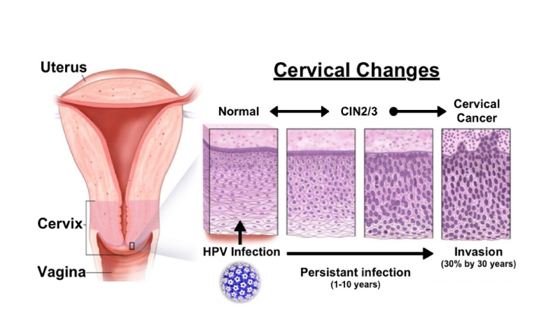 มะเร็งปากมดลูก เกิดจากการติดเชื้อไวรัส HPV (Human Papilloma Virus) ซึ่งสามารถติดต่อได้ทางเพศสัมพันธ์ เมื่อเกิดรอยบาดแผลเล็กๆบริเวณเยื่อบุปากมดลูก เชื้อไวรัส HPV จะแทรกซึมไปยังบริเวณเซลล์ปากมดลูก และไปเปลี่ยนแปลงสารพันธุกรรมภายในเซลล์ ทำให้เกิดการแบ่งตัวที่ผิดปกติ และใช้เวลาประมาณ 10-15 ปี เซลล์ที่ผิดปกติจะเพิ่มจำนวนมากขึ้นจนเกิดเป็นมะเร็งปากมดลูกและกระจายไปยังอวัยวะข้างเคียงได้ เช่น ต่อมน้ำเหลือง กระเพาะปัสสาวะ ลำไส้ ทำให้ยากแก่การรักษาและมีโอกาสเสียชีวิตสูง