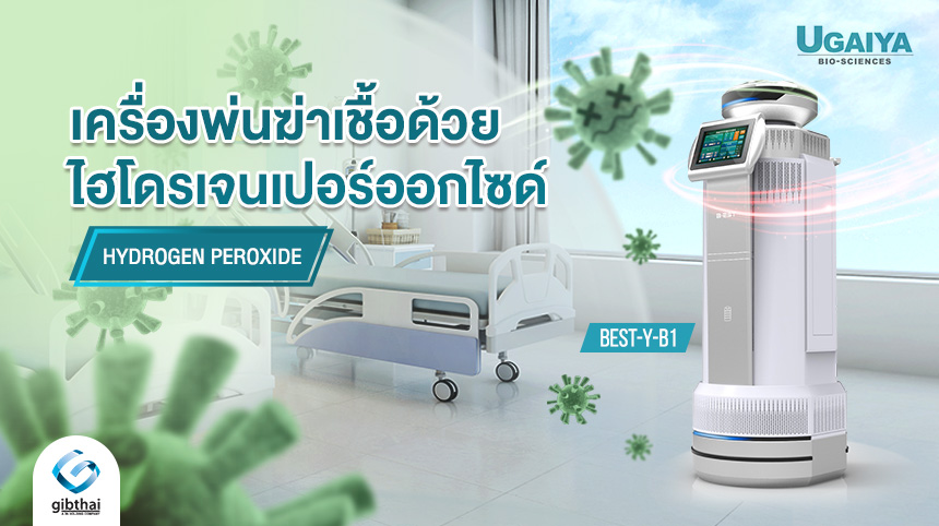 เครื่องพ่นฆ่าเชื้อด้วยไฮโดรเจนเปอร์ออกไซด์ รุ่น Best-Y-B1 ยี่ห้อ Ugaiya เป็นเครื่องพ่นฆ่าเชื้อโรคตามพื้นผิว และอากาศแบบเคลื่อนที่ (Moblie) ซึ่งเป็นผลิตภัณฑ์จากประเทศญี่ปุ่นที่พ่นฆ่าเชื้อด้วยสารไฮโดรเจนเปอร์ออกไซด์ความเข้มข้นร้อยละ 6.6 ถึง 7 เครื่องจะสร้างอนุภาคไฮโดรเจนเปอร์ออกไซด์ขนาดไม่เกิน 5 ไมโครเมตร และพ่นไปรอบทิศทางของตัวเครื่อง 360 องศา ซึ่งสามารถกำจัดเชื้อเชื้อบริเวณพื้นผิว เช่น Staphylococcus albicans และ H1N1 ได้ไม่ต่ำกว่าร้อยละ 99.9 และแบคทีเรียทั่วไปได้ไม่น้อยกว่าร้อยละ 90 ต่อพื้นที่ใช้งาน 150 ลูกบาศก์เมตร