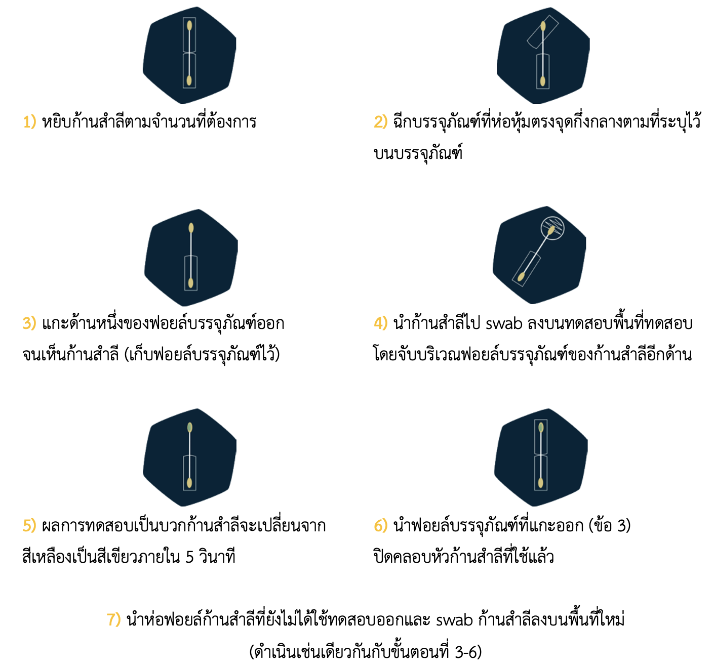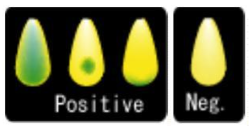 ผลการทดสอบลบ ก้านสำลียังคงเป็นสีเหลือง (ภาพด้านซ้ายขวามือ)