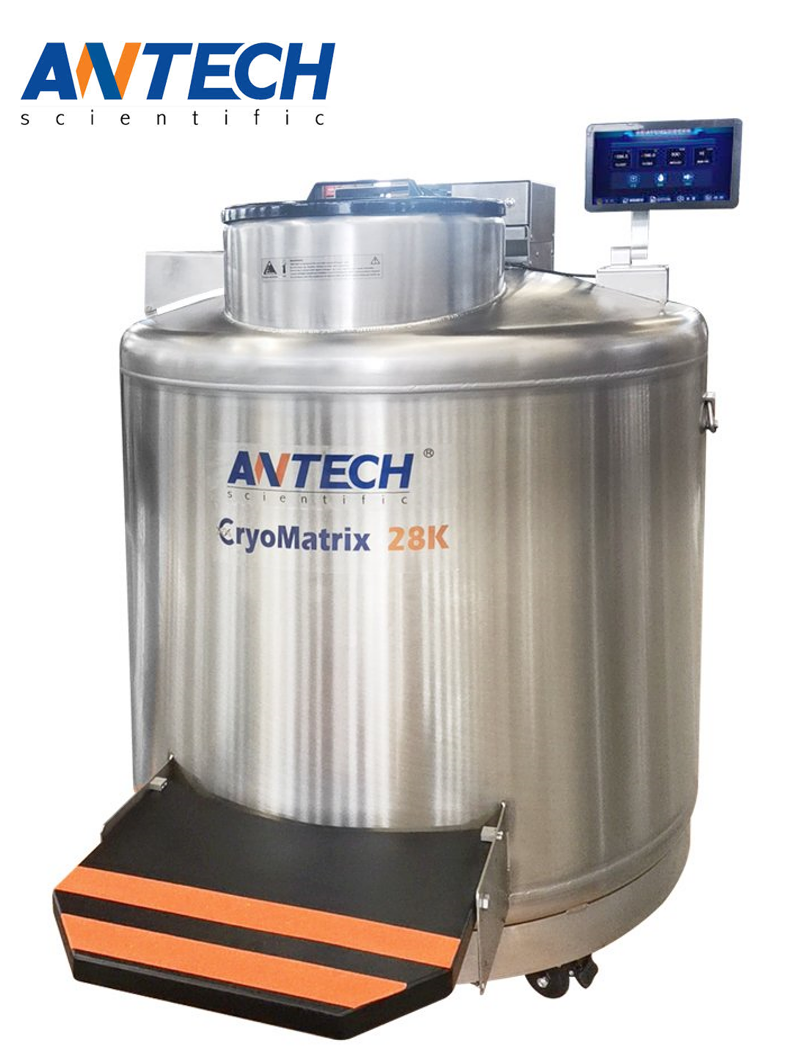 ถังไนโตรเจนสำหรับจัดเก็บตัวอย่างในสถานะไอ (Cryogenic Vapor Freezer) รุ่น CryoMartix เป็นผลิตภัณฑ์ของบริษัท ANTECH Scientific ประเทศจีน โดยทำหน้าที่เป็นอุปกรณ์ที่ใช้เก็บตัวอย่างในสภาพแวดล้อมที่มีสถานะเป็นไอ (Vapor phase) ที่อุณหภูมิ -190°C  ตัวถังผลิตจากสเตนเลสสตีล (Stainless steel) หุ้มด้วยฉนวนสุญญากาศ (High vacuum coverage) เพื่อป้องกันความร้อน และลดอัตราการระเหยของไนโตรเจน ซึ่งถัง  Cryogenic Vapor Freezer มีขนาดให้เลือกตั้งแต่ 370 ถึง 1,800 ลิตร