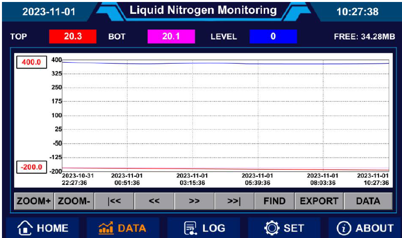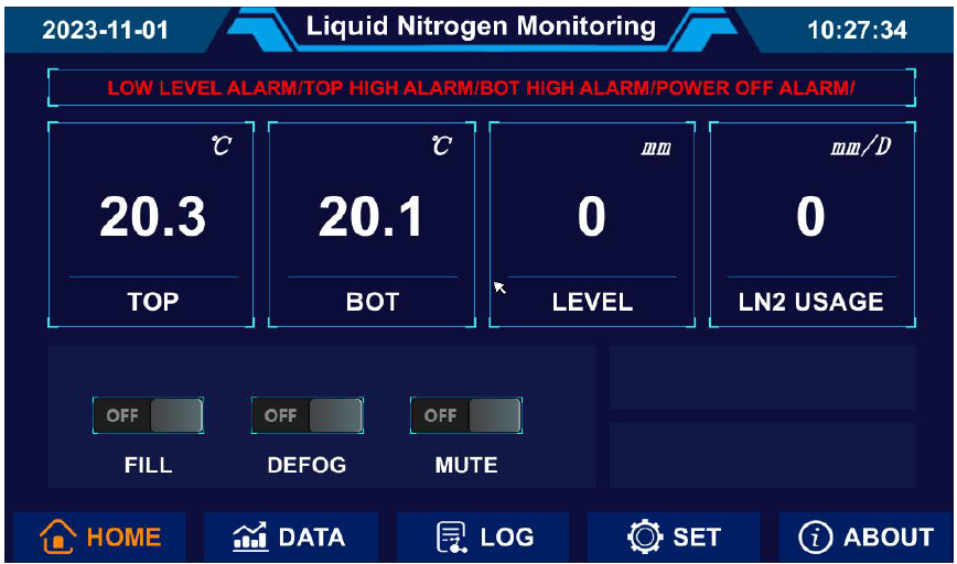 ตัวถังมาพร้อมหน้าจอแสดงผลระบบสัมผัส HMI  (Human-machine interactive ) สามารถแสดงผลอุณหภูมิด้านบน และด้านล่างของถัง ระดับของไนโตรเจนเหลว กราฟอุณหภูมิ และสัญญาณเตือนข้อผิดพลาดในการทำงาน