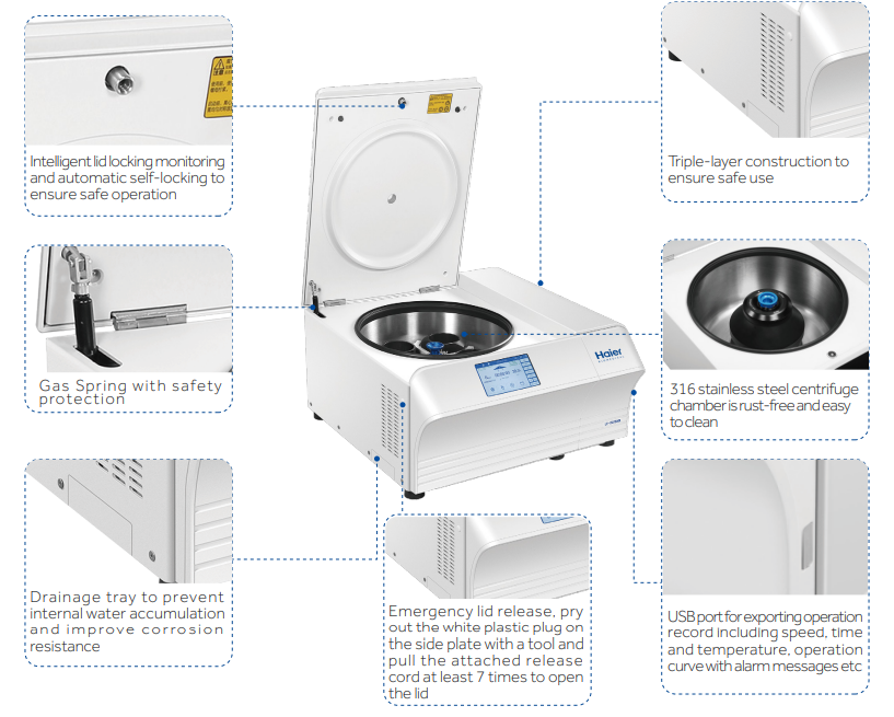 คุณสมบัติเด่นของเครื่องปั่นเหวี่ยงความเร็วสูงชนิดควบคุมอุณหภูมิแบบตั้งโต๊ะ รุ่น LX-155T500R จากแบรนด์ Haier Biomedical