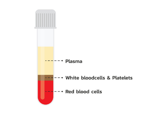 ภาพแสดงองค์ประกอบของเลือดหลังผ่านการหมุนเหวี่ยง