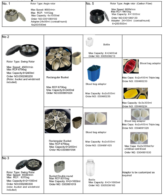 ข้อมูลของหัวปั่นเหวี่ยงที่ใช้งานได้กับเครื่อง (Rotor)