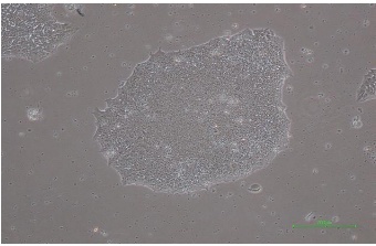 รูปแสดง iPSC Morphology จากการเลี้ยง iPSC ด้วยอาหาร Essential 8TM และ Vitronectin ที่ Passage ลำดับที่ 4